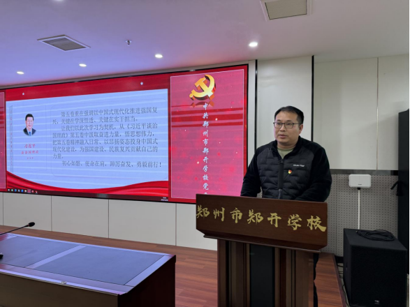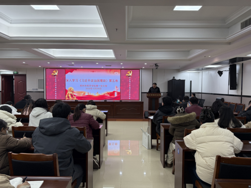 为全面深入学习领会党的二十届四中全会精神,扎实推进学习宣传贯彻工作,12月30日,学校第一党支部书记雷坤以“深入学习《习近平治国理政》第五卷”为主题讲授专题党课,全体党员参加学习。