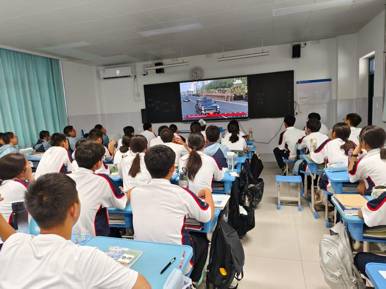 2025年9月3日,是中国人民抗日战争暨世界反法西斯战争胜利80周年纪念日。今天,北京天安门广场举行纪念中国人民抗日战争暨世界反法西斯战争胜利80周年大会,郑开学校组织全体师生共同观看现场直播,铭记历史、缅怀先烈、珍爱和平、共创未来。